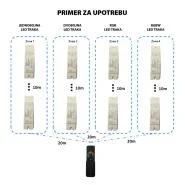 Zahvaljuljući višefuncijskim opcijama sa ovim daljinskim upravljačem možete upravljati sa čak 4 vrste LED traka: jednobojnim, dvobojnim, višebojnim kao i višebojnim + bela boja (RGB, RGBW, DIM, CCT)