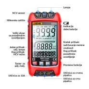 Omogućava ispitivanje napona bez dodira, kao i standardno merenje pomoću mernih kablova