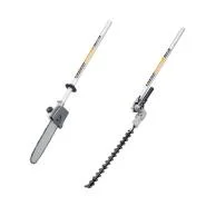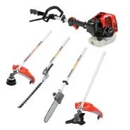 Isporučuje se sa više nastavaka (trimer za travu, trimer za živicu, trokraki nož, testera za orezivanje tanjih grana)