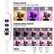 Tajmer omogućava precizno postavljanje svetlosti bez brige o isključivanju, dok 10 nivoa jačine omogućava da svaka biljka dobije upravo onoliko svetla koliko joj treba