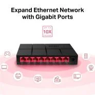 Brzo proširite svoju mrežu pomoću MS108G sviča, sa osam 10/100/1000 Mbps Ethernet portova—10 puta brže od običnih 10/100 Mbps Ethernet portova