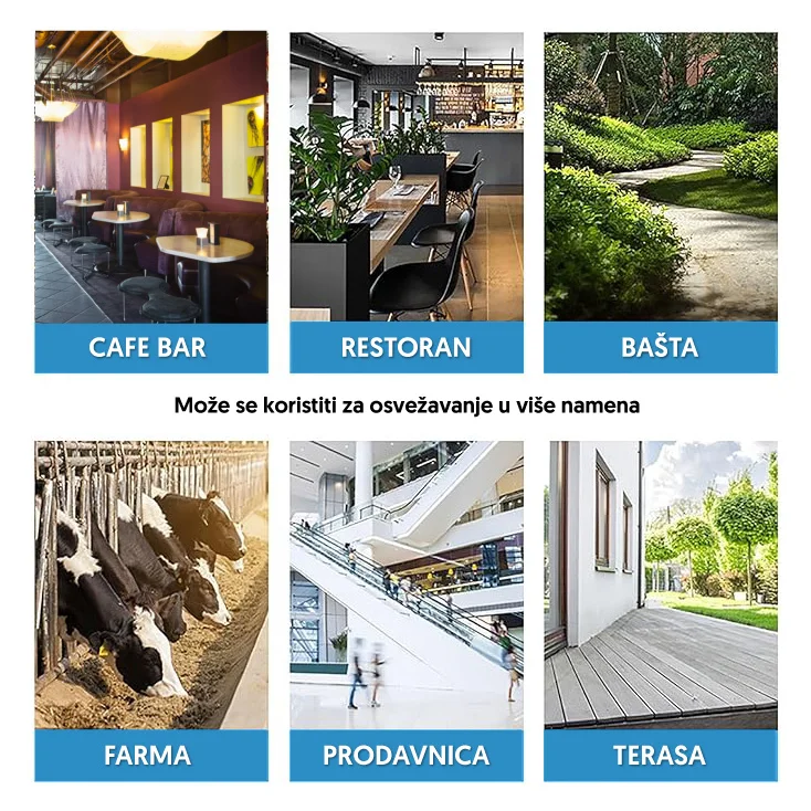 Osvežite svaki kutak Vašeg doma ili poslovnog prostora - idealan je za upotrebu u različitim okruženjima – od kućnih terasa i bašti do komercijalnih prostora kao što su kafići, restorani i sl.