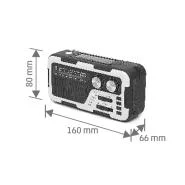 Može se slušati 3 talasne dužine (AM-FM-WB), a moguća je i reprodukcija MP3 formata sa prenosne memorije (USB/microSD)