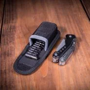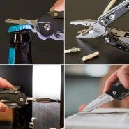 Od dodataka poseduje kombinovana klešta, sečice, pljosnati šrafciger, turpiju, krstasti šrafciger, malu testeru, otvarač za flaše, sečivo 7 cm sa nazubljenim delom, magnetni držač bitova i 9 bitova