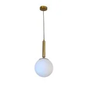 Elegantna vislica svedenog, ali efektnog dizajna sa jednom staklenom kuglom bele boje i sa detaljima u boji mesinga/starog zlata