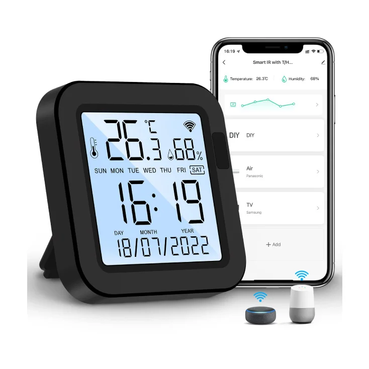 Pomoću ugrađenog senzora za temperaturu i vl.vazduha idealno je za povezivanje sa klima uređajima i kontrolisanje istih